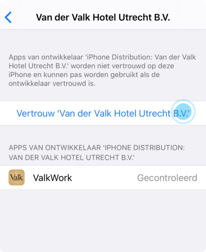 Om de Valk Work app te kunnen installeren dien je deze link te openen op